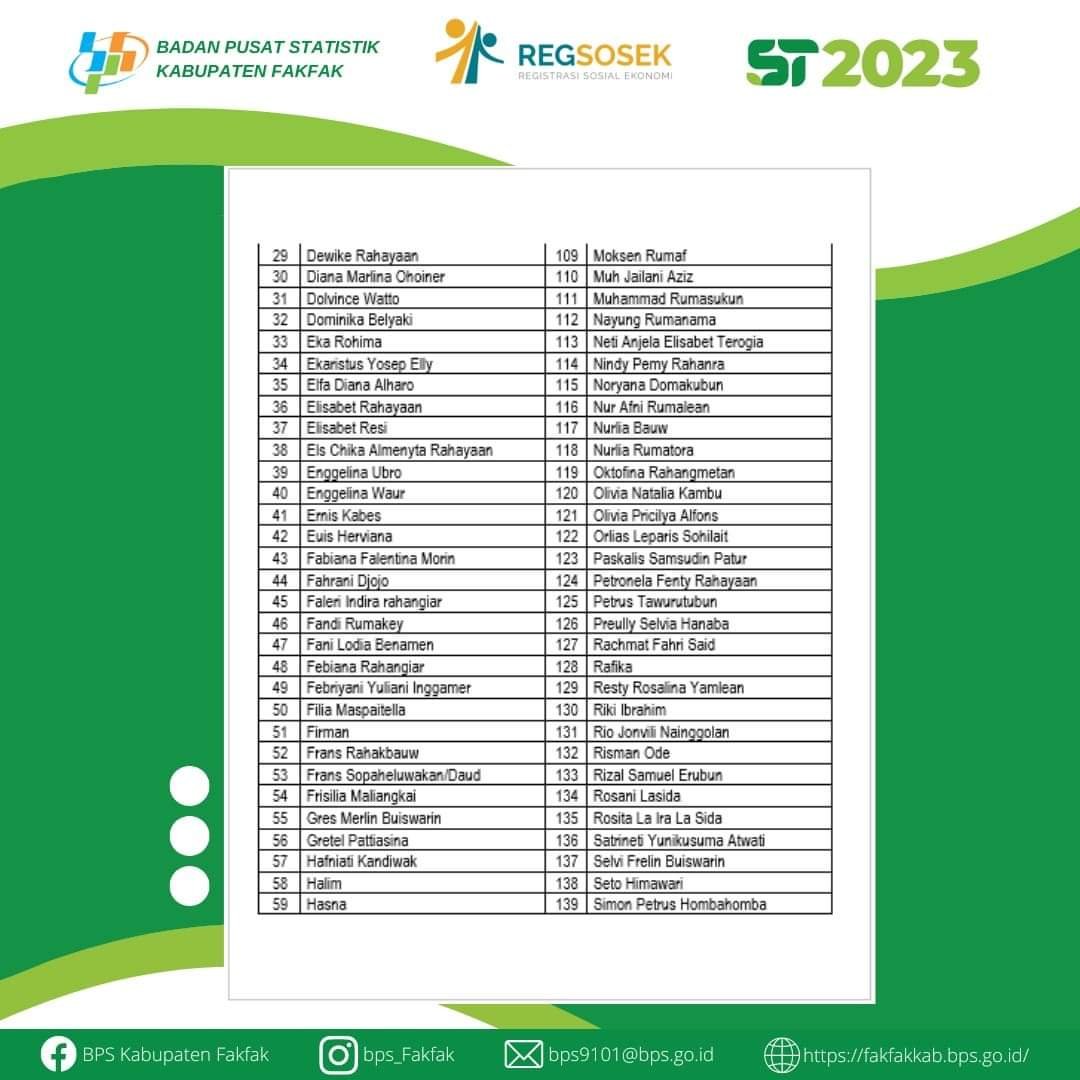 Hasil Seleksi dan Wawancara untuk petugas pendataan Registrasi Sosial Ekonomi (REGSOSEK) tahun 2022 Kabupaten Fakfak.
