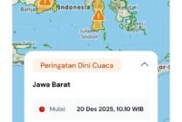 papuabarat.tagarutama.com, Jakarta – Badan Meteorologi, Klimatologi, dan Geofisika (BMKG) merilis peringatan dini cuaca untuk Sabtu, 20 Desember 2025. BMKG menetapkan status waspada hingga siaga…